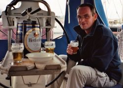 Heute wieder einmal ausschlafen ohne Wecker, UKW-Funk und Hermanns Geschirr-Klappern, dann ohne Streß duschen und frühstücken. Anschließend werden wieder div. Wetterberichte eingeholt per UKW (... dit is de Nederlandse Kustwacht ... ), Kurzwelle u. Wetterfax per KW (Northwood und DWD) und vom Hafenmeister (aber auch der verspricht nichts Besseres). Anschließend haben wir kein dringendes Programm und so gibt es nur etwas Unterhaltung zur Vertreibung der Langeweile.